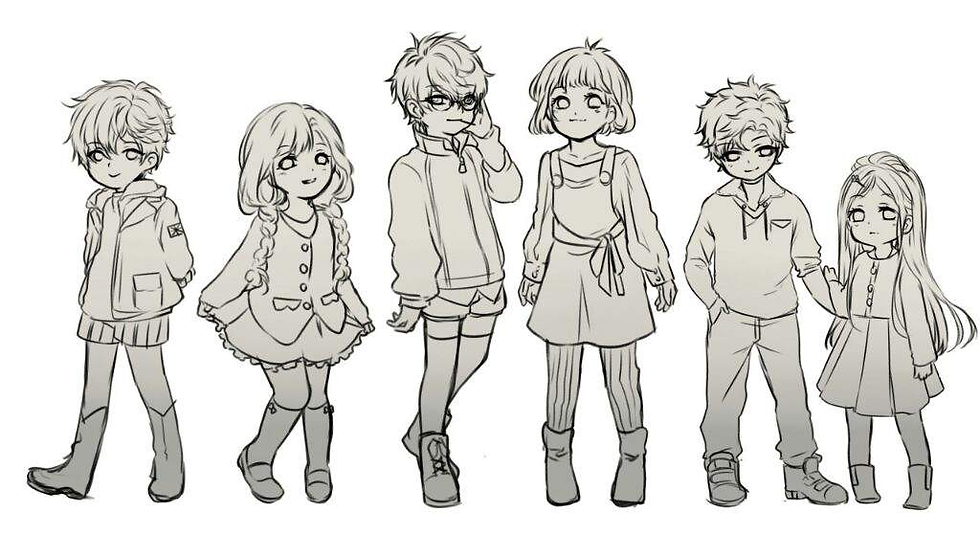 The idea of this mood board is to help me understand the basics of the chibi art style. By focusing on making features like the eyes and head bigger and hand and feed small and simple to create a cute overall look.