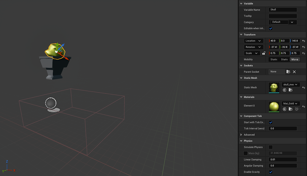 By doing this I can give my 'skull door' , my walls and my 'skull key' a golden or stone like material. Doing this will help elevate my level as it will make my objects stand out and look more realistic. This will make players in my level feel more like they are in the world I want to create as they will appreciate the cohesive design of the importance of gold and the simple stone.