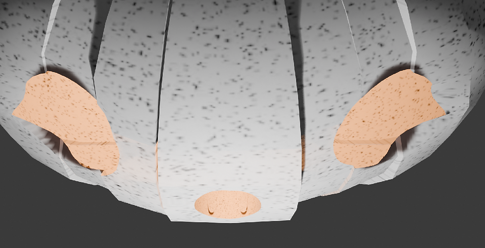 I first began by following the school's tutorial on how to make a low-poly pumpkin in 'Blender'. Firstly, I used a sphere mesh and adjusted it to the size I desired and used extraction cuts /bevles to be able to make the lined effect on the pumpkin making it look more realistic. I then used a cylinder mesh to create the stalk of the pumpkin and used a shortcut to make both materials into one object. To create the eyes and mouth holes, I used a sphere mesh and duplicated it to make two eye holes and placed them in the wanted position. I then used the boolen tool to extract the sphere out of the pumpkin mesh, making the eyes. I then used the vertices tool and the mirror tool to be able to give the pumpkin some 'eyelashes'; I did it to help give my pumpkin more personality. I then downloaded a noise texture and created a material of an off-white colour and combined it with the texture to give my pumpkin depth. Lastly, in textured paint I gave the eyes some black burn marks to add more personality and uniquness.